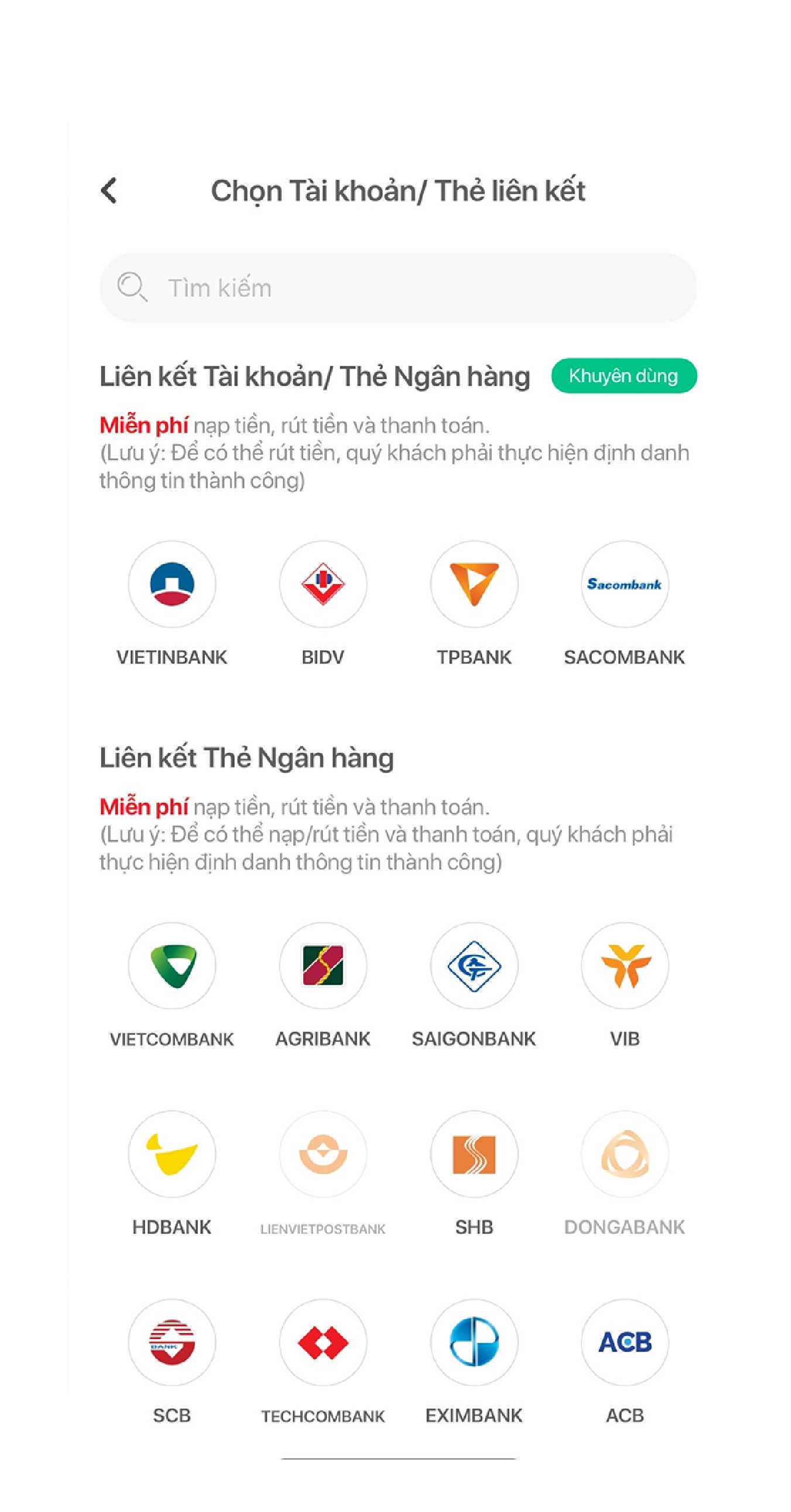 Chọn ngân hàng muốn liên kết