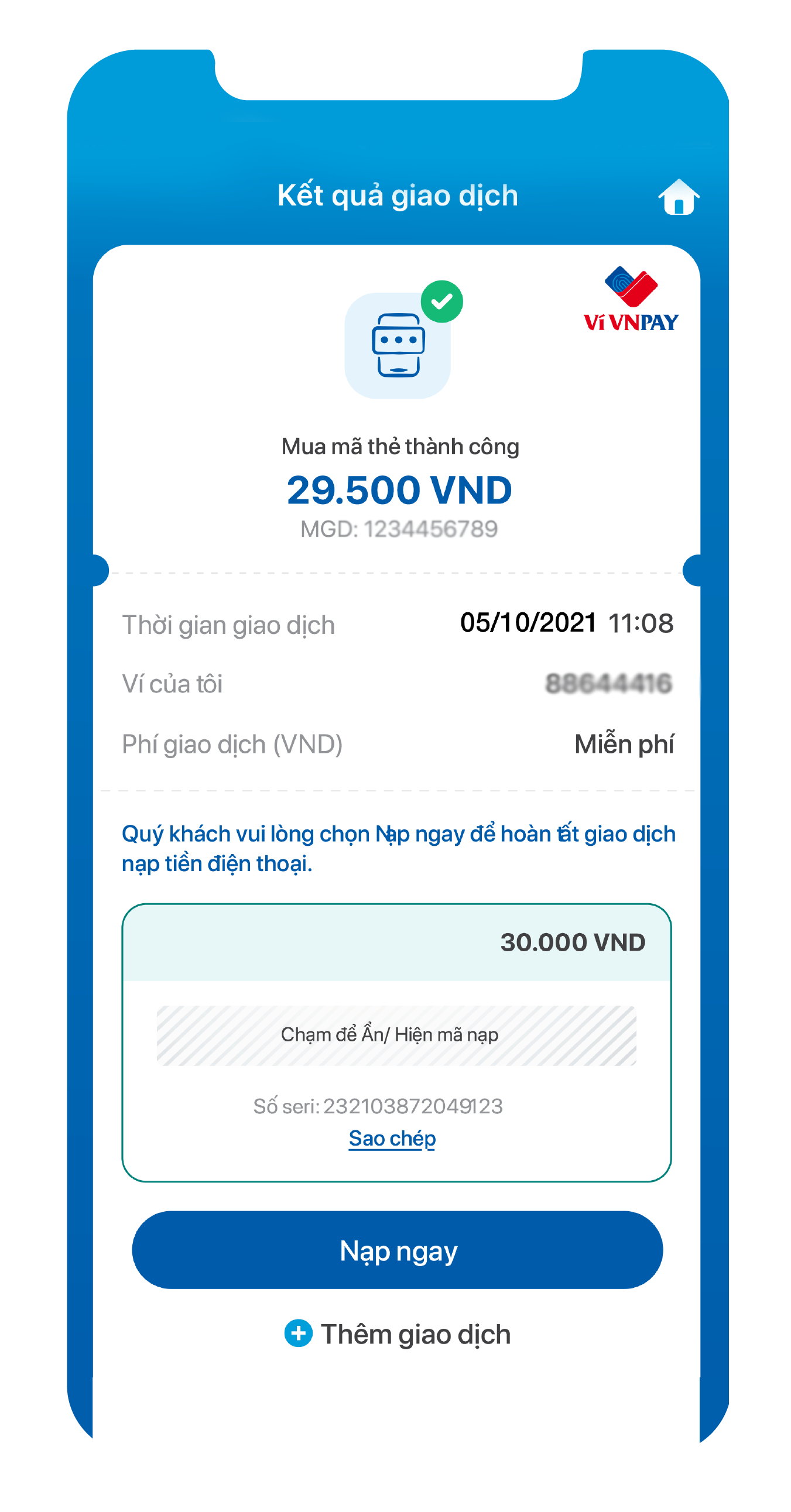Bước 2. Thực hiện Giao dịch thanh toán bất kỳ
