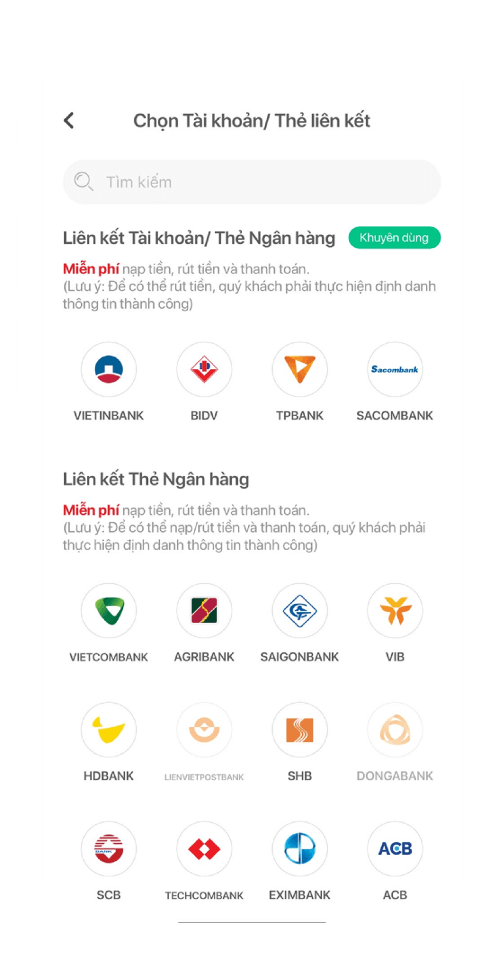 Chọn ngân hàng muốn liên kết
