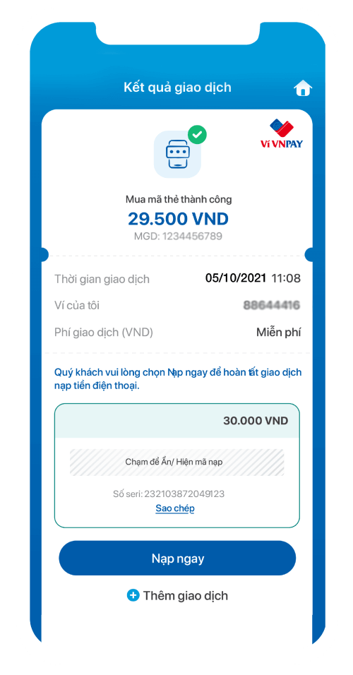 Bước 2. Thực hiện Giao dịch thanh toán bất kỳ